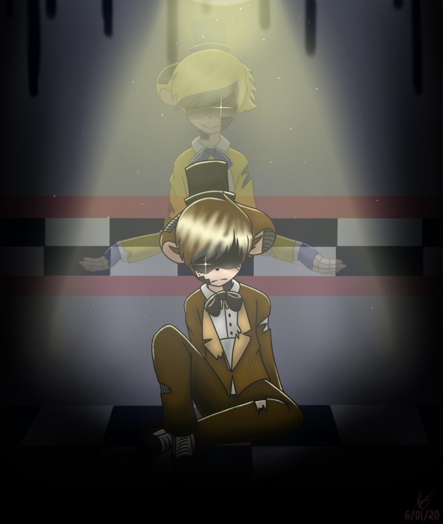 This is just an idea I had for a bit. I wanted to also practice my lighting and shadows since I haven’t drawn in a while so… Yeah. I also want to say that both of these characters are NOT mine, the characters themselves belong to Scott Cawthon, the creator of Five Nights at Freddy’s, but the designs are mine.